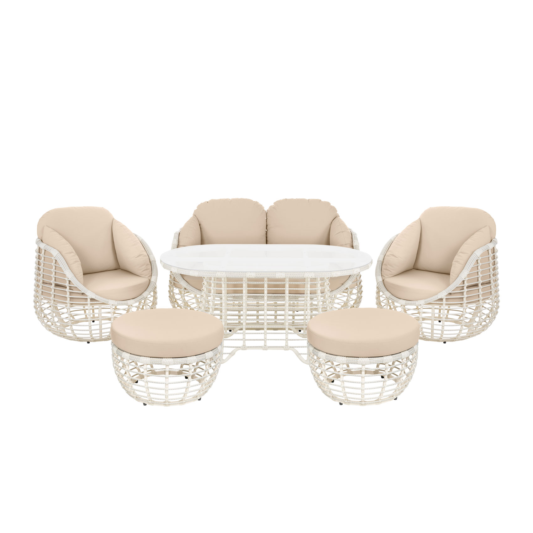 Состав комплекта: кресло (93*93*78) вес 16,3 кг стол (152*93*71) вес 33,8 кг, диван (93*162*78) вес 25,5 кг, пуф (70*70*46) вес 6,85 кг