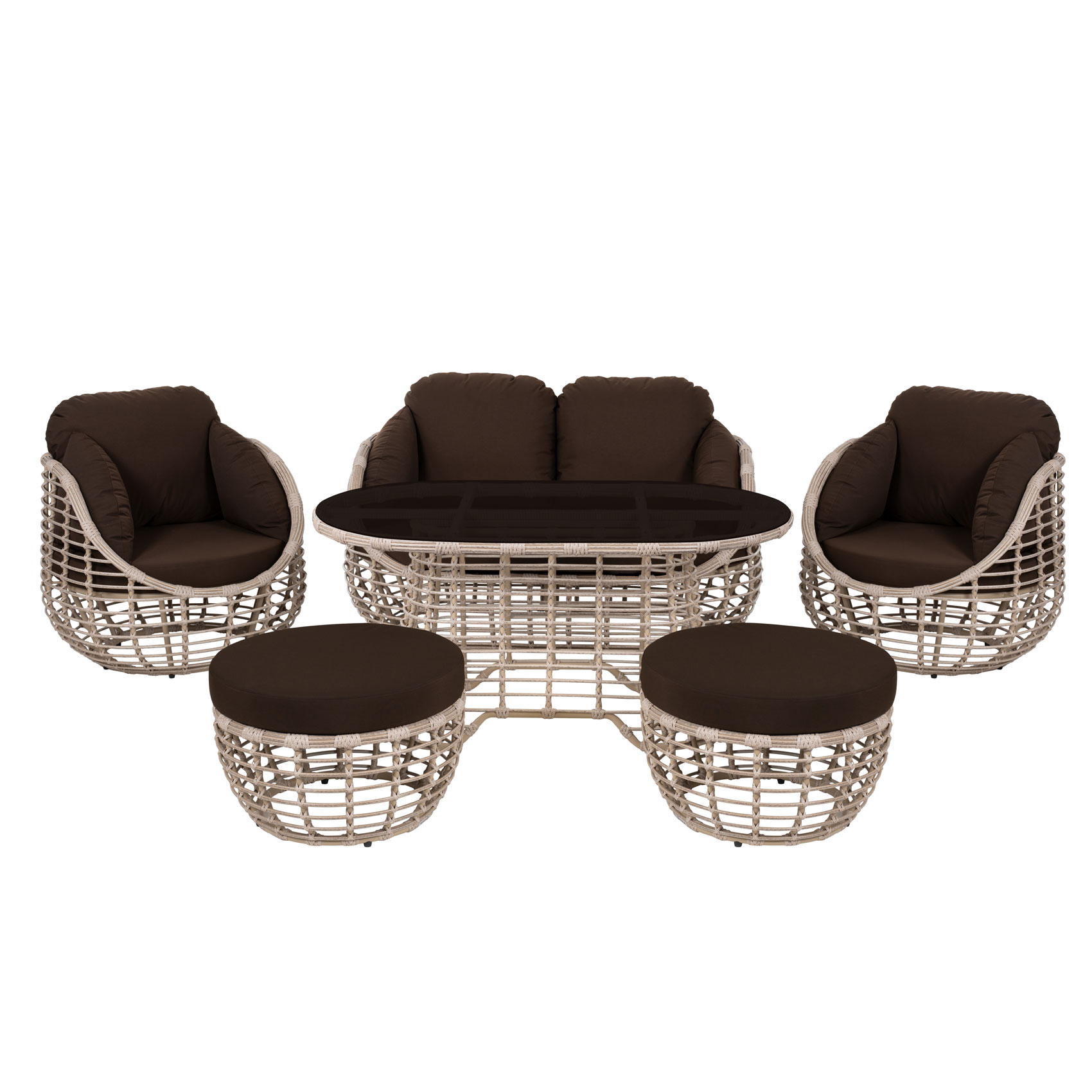 Состав комплекта: кресло (93*93*78) вес 16,3 кг стол (152*93*71) вес 33,8 кг, диван (93*162*78) вес 25,5 кг, пуф (70*70*46) вес 6,85 кг