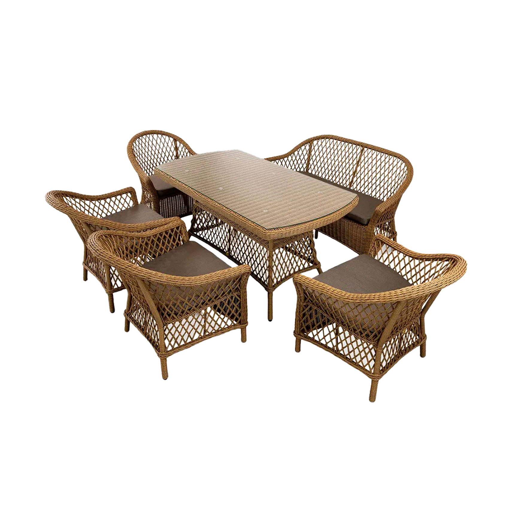 Состав комплекта: кресло (71*76*80) вес 6,8 кг, стол (153*82*75,1) вес 28,8 кг, диван (71*142*80) вес 11,4 кг
