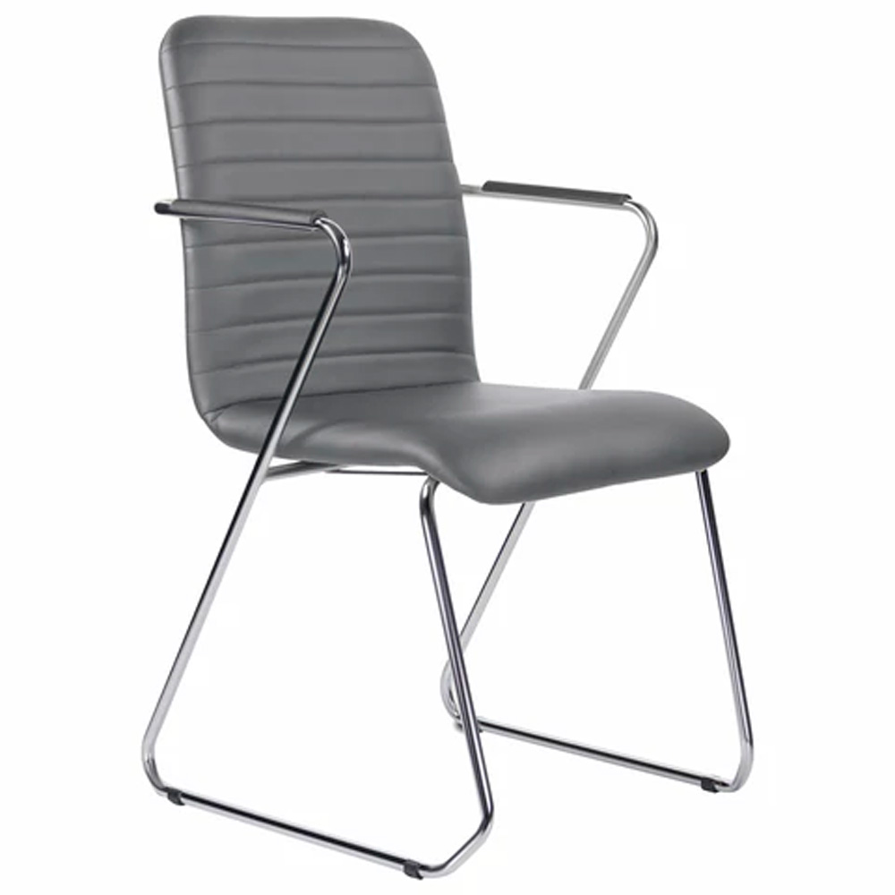 Уникальный каркас из металла и узкие подлокотники с небольшими накладками придают конструкции легкость и прочность. Горизонтальные строчки на спинке подчеркивают элегантный внешний вид. Кресло прекрасно впишется в любой интерьер.