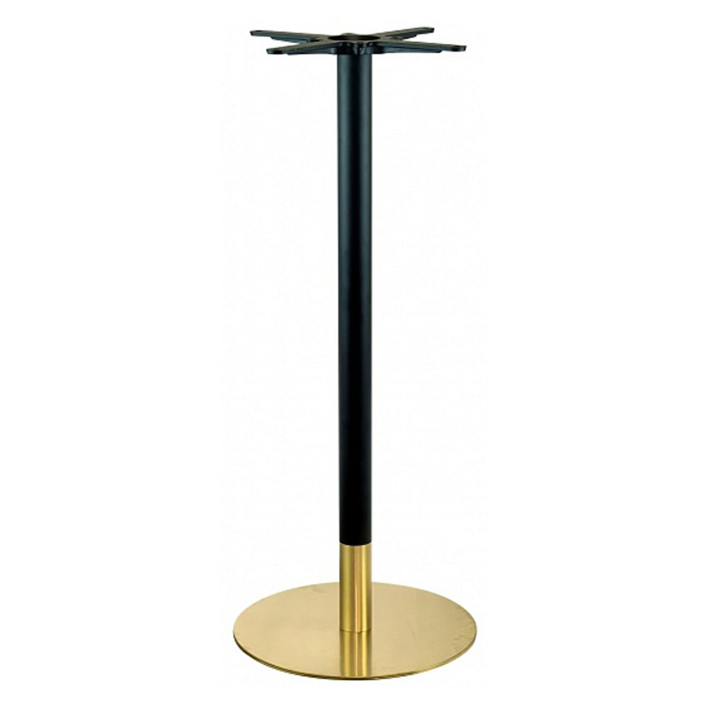 Подстолье. Нижняя часть из полированной нержавеющей стали (матовое) золотого цвета. Верхняя часть из стали покрытой черным порошком. Рекомендуемый размер столешницы: Ø70