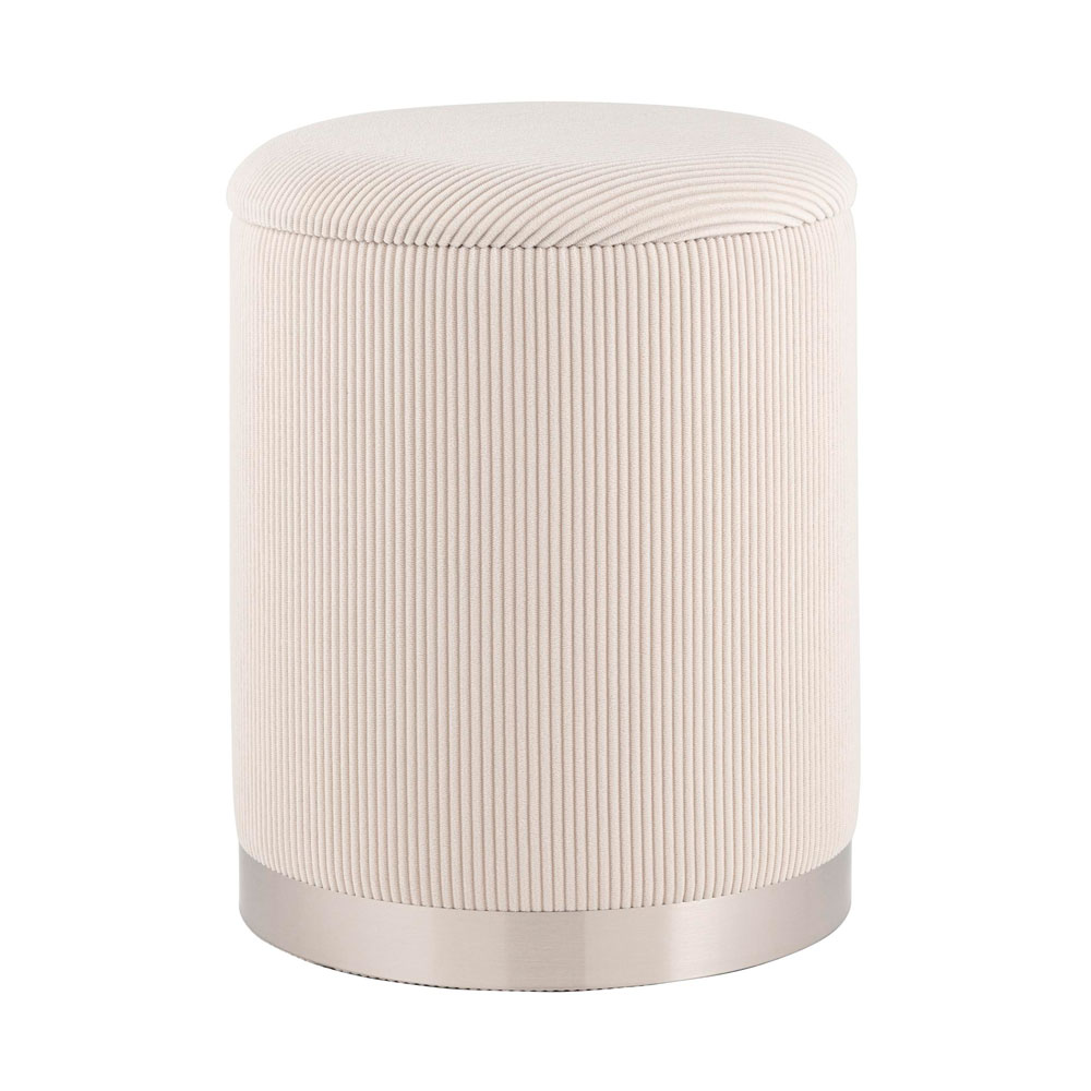 Лаконичная модель пуфа Эмили стильный и удобный аксессуар для вашего интерьера. Мягкое круглое сиденье обито мягким и приятным на ощупь вельветом молочного цвета. Обивка отличается не только эстетичностью, но и долговечностью, устойчивостью к износу и легкостью в уходе. Высота: 46 см, диаметр: 36 см. Особенности и комфорт. Пуф оснащен полностью съемной крышкой, что делает его не только удобным для сиденья, но и функциональным для хранения. Обивка украшена декоративными оборками, а металлический декор в основании в серебряном цвете добавляет стильный акцент.Функциональность и защита. Выдерживает нагрузку до 150 кг, что делает его идеальным для повседневного использования. Небольшие подпятники в основании пуфа защищают напольное покрытие от повреждений и предотвращают скольжение, делая использование максимально безопасным и удобным.Область применения. Пуф подходит как для современного, так и для классического интерьера спальни, прихожей или гостиной, добавляя нотки роскоши и комфорта в вашу комнату.