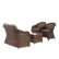 Комплект выполнен из круглого искусственного ротанга коричневого цвета. Каркас - из легкого и прочного алюминия. Подушки со съемными чехлами - из 100% полиэстера, плотностью 230гр/м2 с влагоотталкивающей пропиткой.