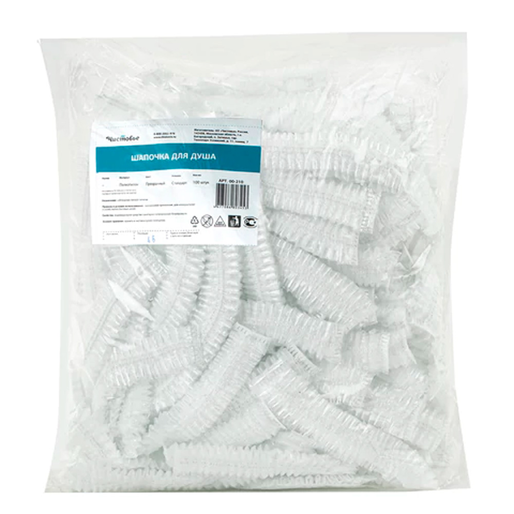 Универсальные шапочки ЧИСТОВЬЕ из полиэтилена. Благодаря прочному материалу надежно защищают от воды, с помощью эластичной резинки хорошо держатся на голове. Используются в парикмахерских, СПА-центрах, банных комплексах, гостиницах.
