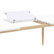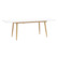 Обеденный стол с прямоугольной столешницей. Цвет столешницы белый. Ножки металлические, покрашены в цвет светлого дерева.