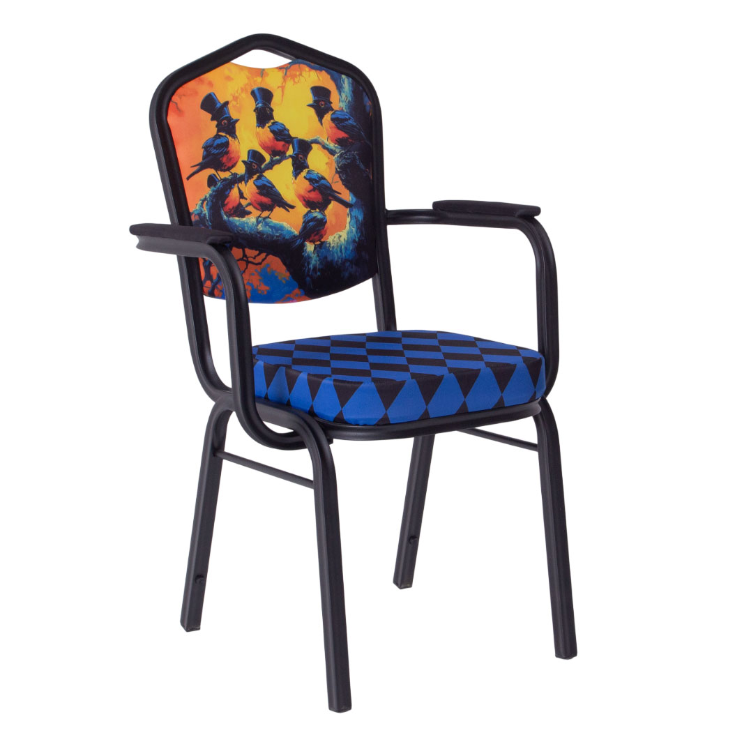 Настоящее фото товара Стул Хит 25 с подлокотниками, каркас черный муар, с принтом Birds, произведённого компанией ChiedoCover