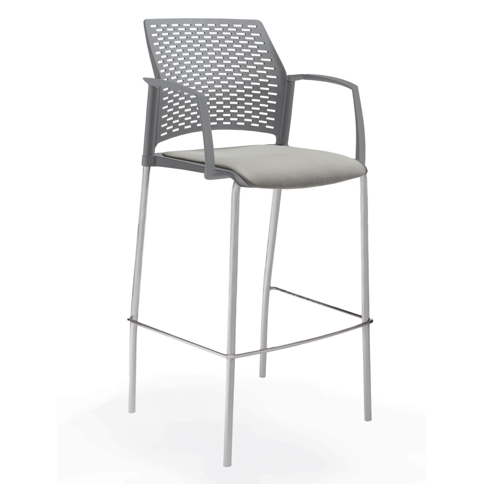 Сидение и спинка визуально воспринимаются как монолитная деталь. Выполнены из полипропилена. Сидение имеет приливы, которые охватывают задние опоры каркаса и смыкается со спинкой. Спинка перфорированная.