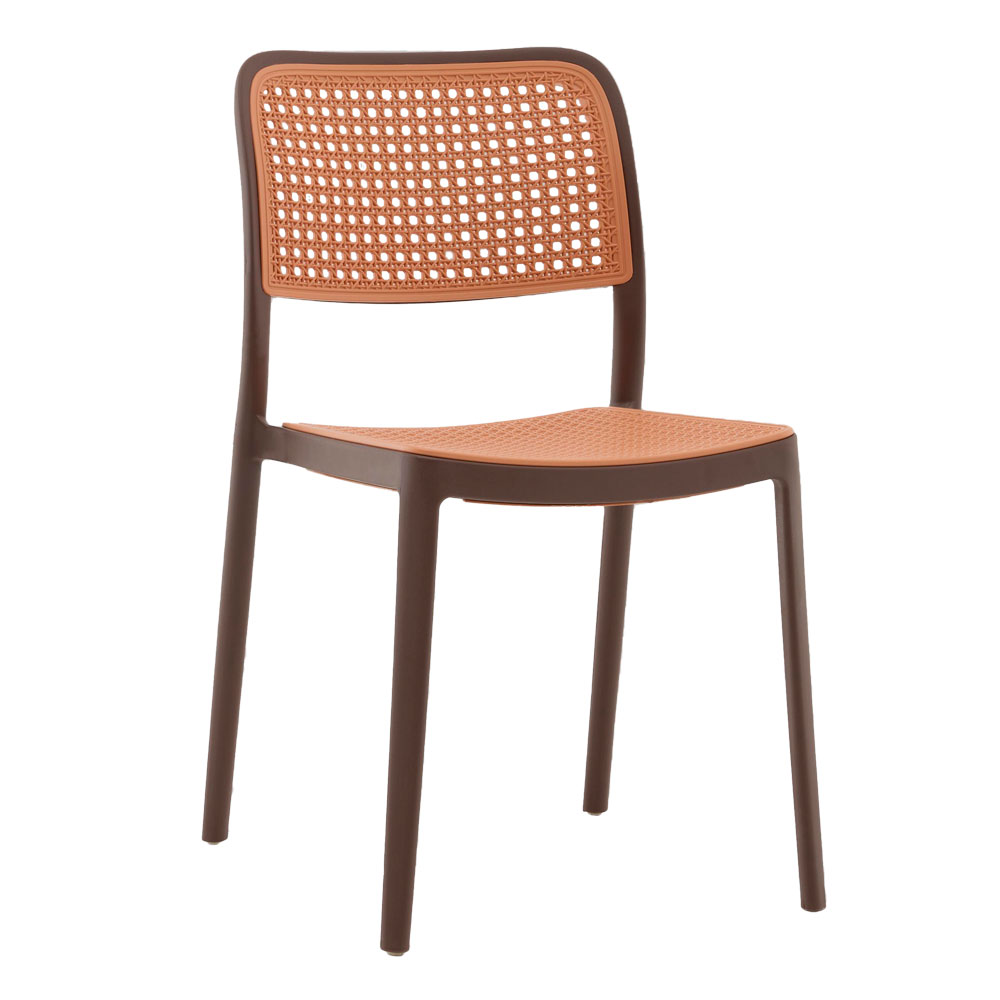Yona сочетает в себе современный минимализм и винтажные мотивы. Плетёный эффект на сиденье и спинке в бежевом цвете напоминает классическую ротанговую мебель, но выполнен полностью из прочного пластика — это стильное переосмысление традиции в современном ключе. Коричневый каркас придаёт модели тёплый и натуральный вид, который отлично впишется как в интерьер, так и в уличную обстановку. Спинка и сиденье имеют слегка изогнутую форму для удобной посадки. Стул изготовлен из качественного пластика, который устойчив к влаге, солнечному свету и механическим повреждениям. Лёгкий по весу, но прочный, он выдерживает нагрузку до 120 кг, оставаясь надёжным решением для повседневного использования. Стулья Yona можно стопировать, что значительно облегчает их хранение и перевозку. Это особенно важно для кейтеринга, кафе, ресторанов и любых мероприятий с массовой рассадкой гостей. Yona прекрасно подойдёт для дома, кухни, сада или террасы. Он будет уместен в учебных заведениях, на конференциях, выставках, банкетах и форумах — везде, где ценятся стиль, удобство и практичность. Стул Yona — это современный взгляд на классический дизайн, который добавит уюта и характера любому пространству.