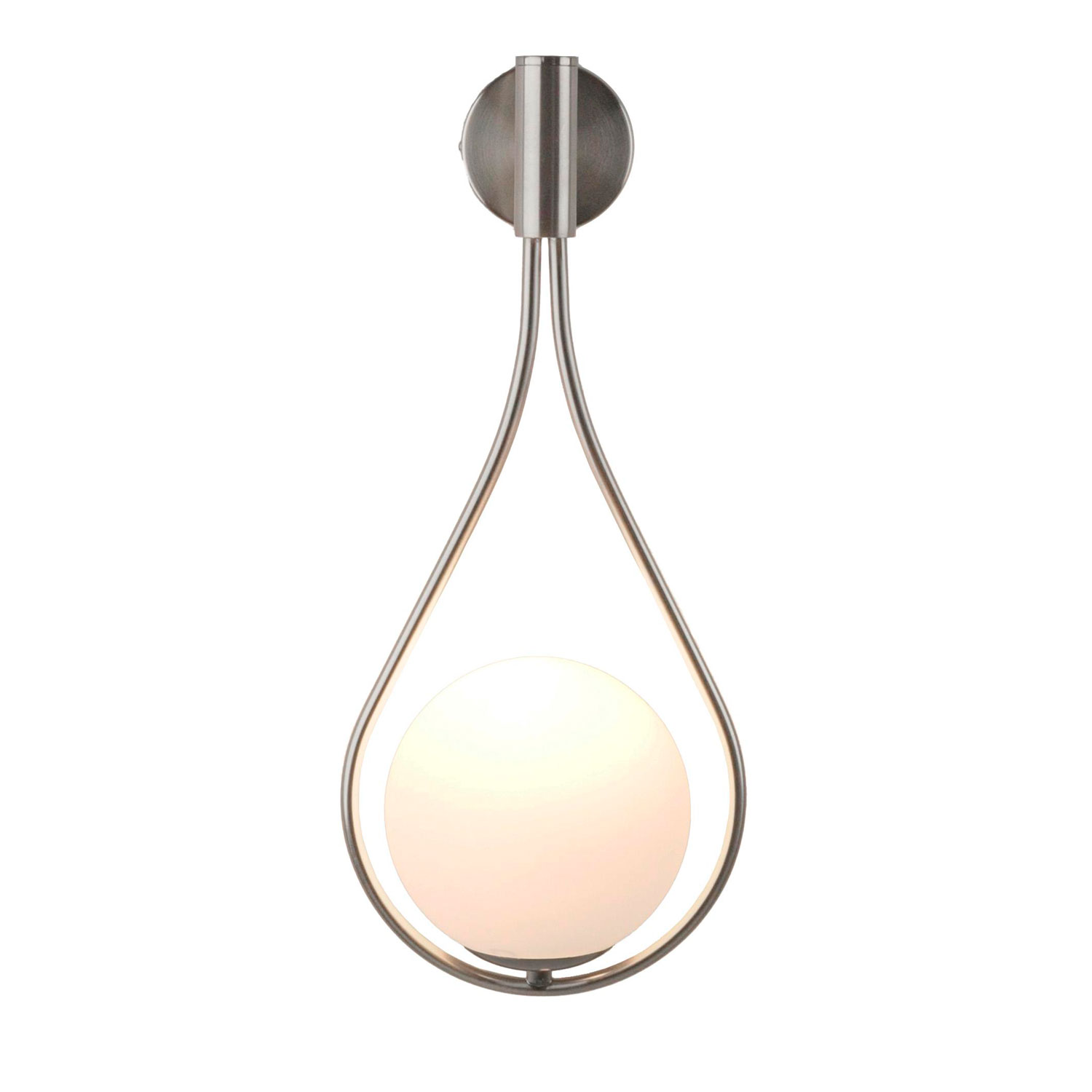 Настенный светильник с оригинальным утончённым дизайном. Плафон из матового стекла мягко рассеивает свет, создавая уютную атмосферу. Металлический каркас каплевидной формы в цвете матовый хром надёжно крепится к стене с помощью крепежной планки. Светильник Симия Барокко станет отличным дополнительным источником света для спальни, коридора или гостиной.