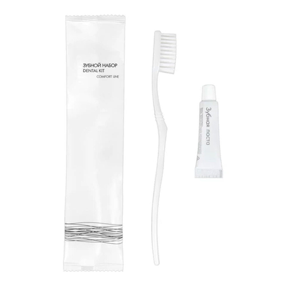 В наборе: зубная щетка, зубная паста в тюбике 5 г.